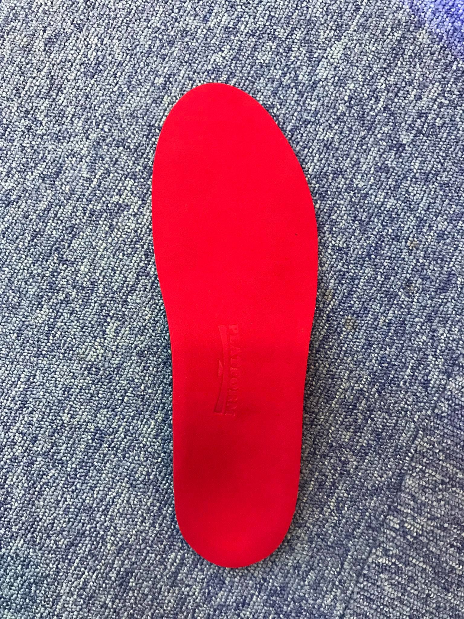 画像の様に足の裏のどこに1番荷重がかかっているか、特殊な機械で計測し、足の細かいサイズも計測して作ります。