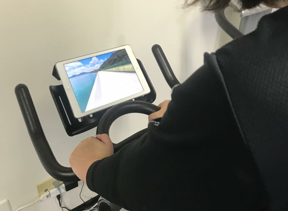 VR動画を観ながら出来ると楽しいのではないかと思い、バイクの前にiPadを置いてやってます♪