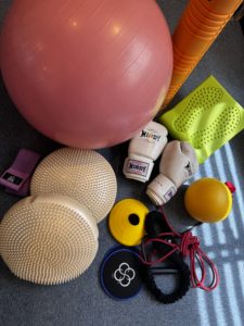ボールに乗ったり!三角コーンもって走ったり!ゴムつけて歩いたり!